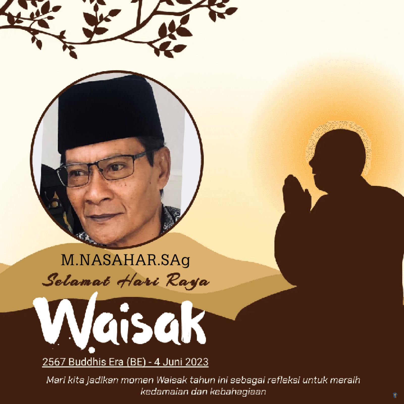 Lombok Utara – Bakal Calon Legislatif Dapil 1 Tanjung Kabupaten Lombok Utara, dari Partai Demokrasi Indonesia Perjuangan (PDIP), M. Nasahar SAg menyampaikan ucapan Selamat Hari Raya Waisak tahun 2567 Caka 2023 Masehi kepada umat Buddha Indonesia, khususnya Lombok Utara.