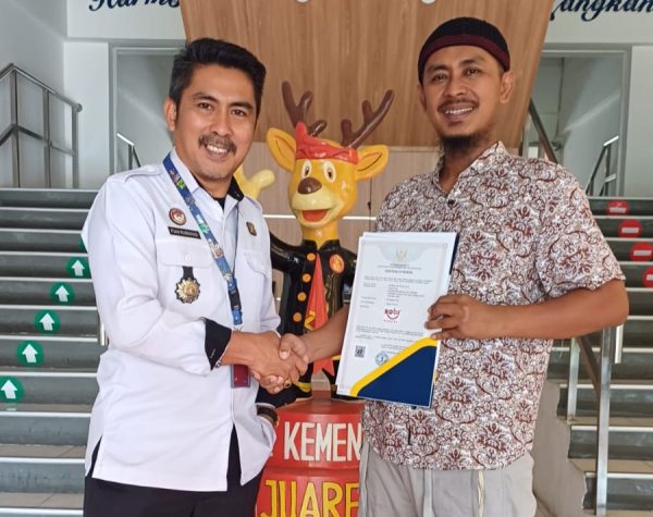 Sertifikat diserahkan langsung Kepala Bidang Pelayanan Hukum Puan Rusmayadi kepada pemilik merek Hasbullah Hadi.