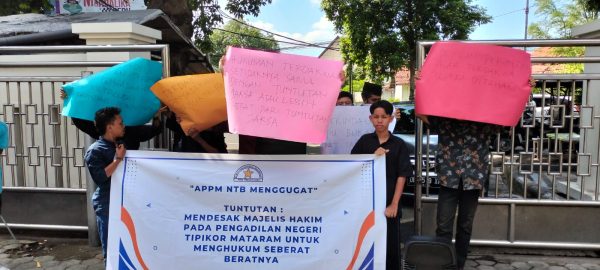 Selain menggelar aksi di PN Tipikor, Mahasiswa juga menggelar aksi di Pengadilan Tinggi NTB menuntut hal yang sama.